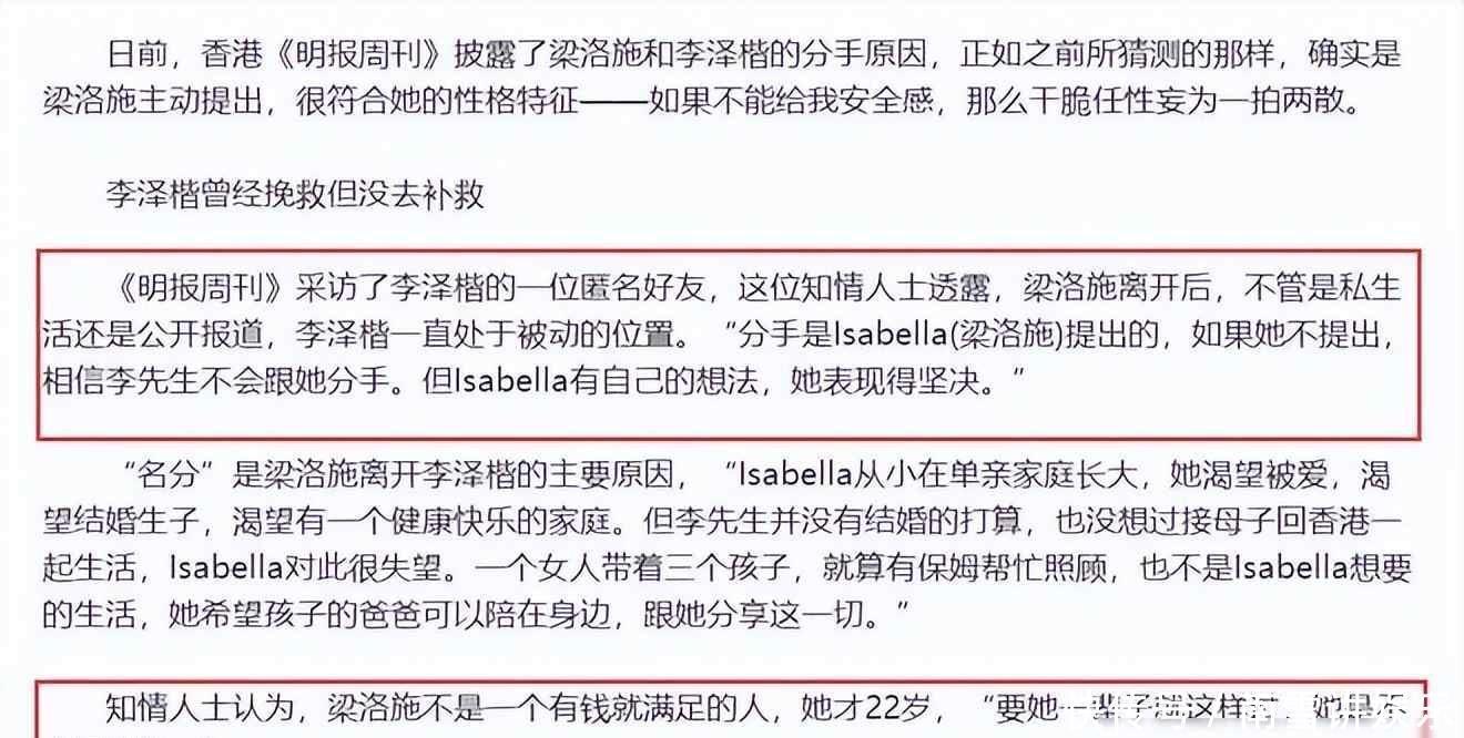 梁洛施和李泽楷的事,我以前只在新闻里听过,现在回头想想,真像一出连续剧,十四年前她突然跟李泽楷分手,还自己把事儿捅给媒体,港圈一下就炸了,按理说她给李家生了三个儿子,按规矩该是正室了吧,可李泽楷就是没给名分,这事换谁都心里不好受,后来《明报周刊》采访过李的朋友,说其实李泽楷挺被动的,要不是梁洛施提分手,他可能还拖着没动。